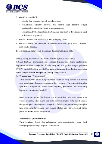 2. Mendukung misi BPR :