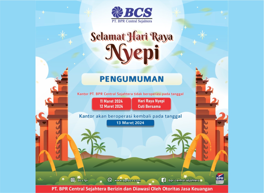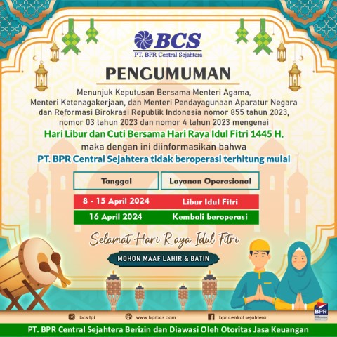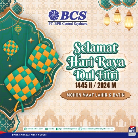 Direksi & Segenap Karyawan/ti PT BPR CENTRAL SEJAHTERA mengucapkan "Selamat Hari Raya Idul Fitri 1445 H / 2024 M "