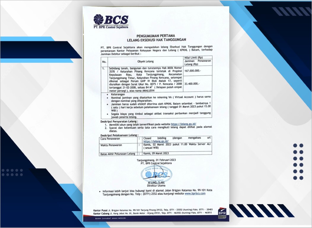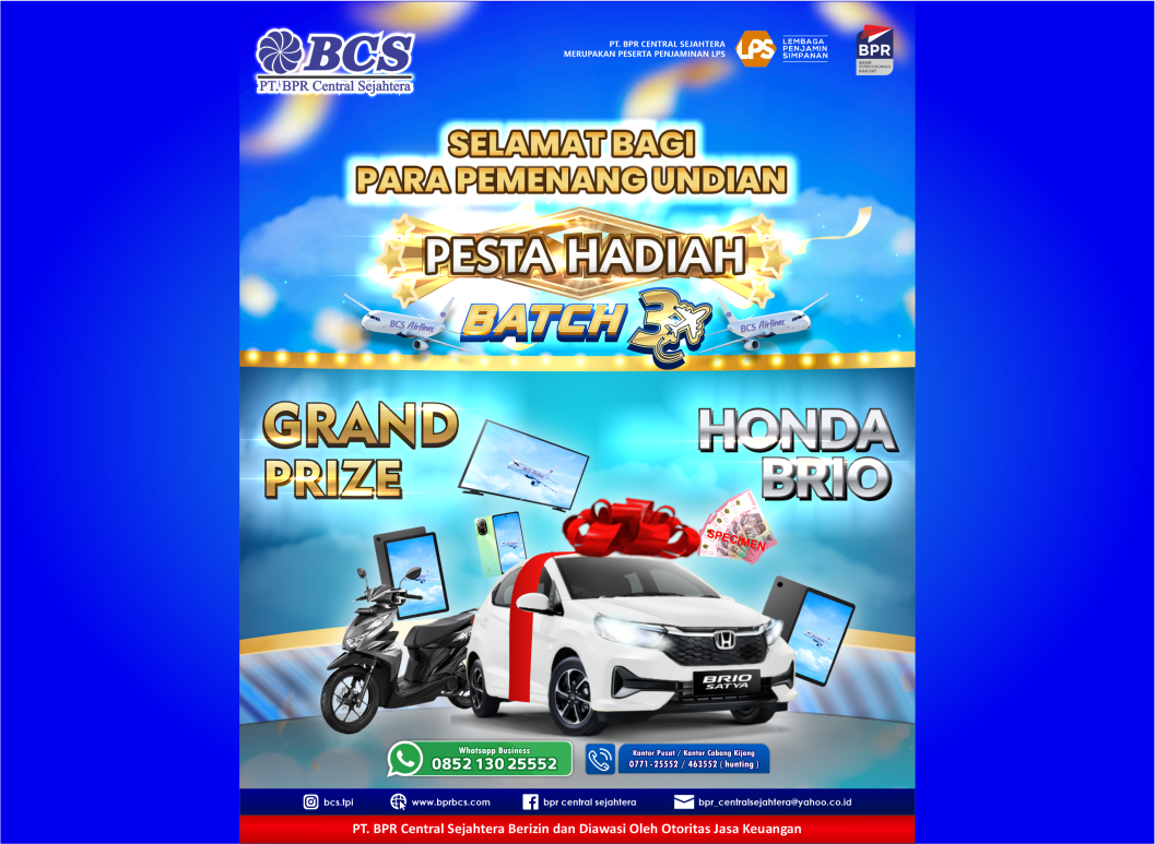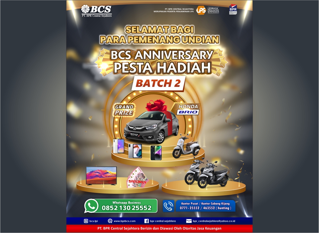 Direksi & Segenap Karyawan/ti PT. BPR CENTRAL SEJAHTERA (BCS)