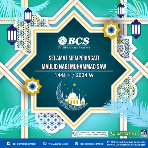 Direksi & Segenap Karyawan/ti PT BPR CENTRAL SEJAHTERA mengucapkan Selamat memperingati Maulid Nabi Muhammad SAW
