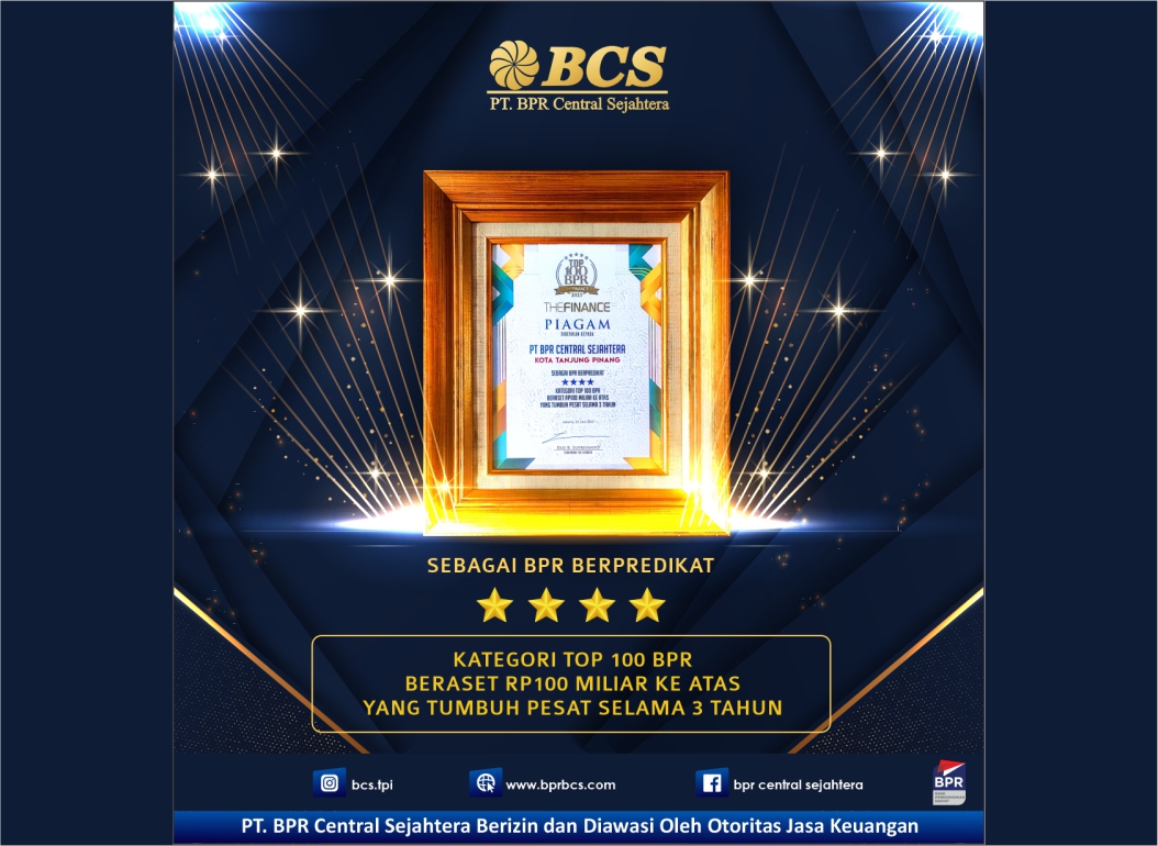 PT BPR Central Sejahtera telah meraih penghargaan TOP 100 BPR AWARD THE FINANCE 2023 Sebagai BPR berpredikat