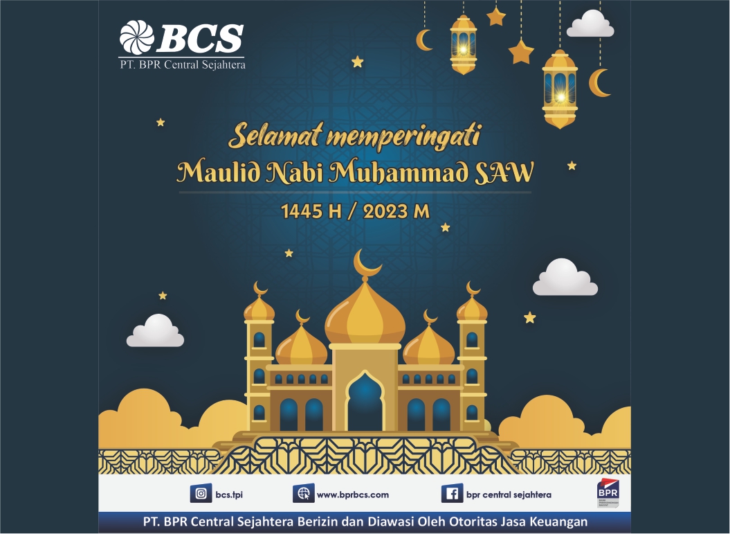 Direksi & Segenap Karyawan/ti PT BPR CENTRAL SEJAHTERA mengucapkan Selamat memperingati Maulid Nabi Muhammad SAW 1445 H / 2023 M